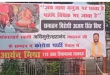 लखनऊ में अविमुक्तेश्वरानंद के समर्थन में लगीं होर्डिंग, कांग्रेस ने सीएम योगी को बताया सनातन…
