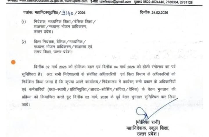 यूपी बेसिक, माध्यमिक सहित सभी कर्मचारियों-अधिकारियों का वेतन दो मार्च तक होगा जारी, दिए गए…