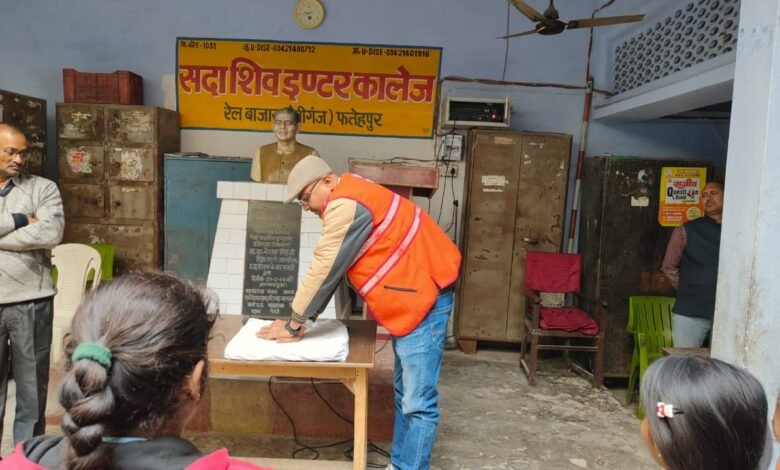 चेयरमैन फ़तेहपुर व कार्यकारिणी सदस्य इंडियन रेडक्रास सोसाइटी उत्तर प्रदेश डॉ अनुराग श्रीवास्तव द्वारा सीपीआर प्रशिक्षण व जागरूकता अभियान सदाशिव इंटर कॉलेज रेल बाजार फ़तेहपुर में चलाया गया।डॉ अनुराग ने बताया कि सीपीआर को हम कार्डियक पल्मोनरी रिसससिटेशन कहा जाता है और जब किसी व्यक्ति की अचानक से ह्रदय गति रुक जाती है तो हम उसे सीपीआर देकर बचा सकते हैं।एक वर्ष से ऊपर के व्यक्तियों को 30 बार दबाव व दो बार मुंह से सांस देते रहना है अनवरत जब तक हृदय धड़कना शुरू न कर दे साथ ही डॉ अनुराग ने बताया कि एक वर्ष से कम उम्र के बच्चे को सीपीआर देने में 15 बार दबाना व 2 बार मुंह से सांस देना है।इस प्रक्रिया से हम किसी व्यक्ति की जान बचा सकते है।इस अवसर पर प्रधानाचार्य शिवराम व प्रमुख सहयोगी पपिंदर सिंह,के के सिंह आजीवन सदस्य इंडियन रेडक्रॉस सोसाइटी उपस्थित रहे।