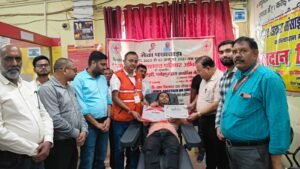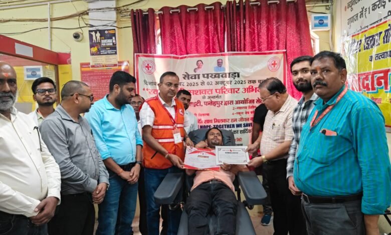 आज दिनाँक 18/09/25 इंडियन रेडक्रॉस सोसाइटी फ़तेहपुर के संयोजकत्व व चेयरमैन एवं कार्यकारिणी सदस्य इंडियन रेडक्रास उत्तर प्रदेश डॉ अनुराग श्रीवास्तव के नेतृत्व में पंजाब नेशनल बैंक सिविल लाइंस में रक्तदान शिविर आयोजित किया गया।शिविर में मुख्य अतिथि के रूप में डॉ राजीव नयन गिरि मुख्य चिकित्साधिकारी उपस्थित रहें।शिविर का शुभारंभ मुख्य चिकित्सा अधिकारी व बैंक प्रबंधक द्वारा फीता काटकर किया गया।कुल 3 रक्तदान हुए व 10 लोगों ने अगली बार रेडक्रॉस सोसाइटी द्वारा आयोजित शिविर में रक्तदान हेतु रजिस्ट्रेशन कराया।मुख्य चिकित्साधिकारी,बैंक प्रबंधक व रेडक्रॉस चेयरमैन द्वारा सभी रक्तदानियों को प्रशस्ति पत्र देकर सम्मानित किया गया।रक्तदानियों में रोहन प्रभाकर,प्रभात सिंह,संदीप कुमार रमन ने मानवता के हितार्थ रक्तदान किया गया।4 रक्तदानी और आये थे पर उनके स्वास्थ्य कारणों से उनका रक्त नहीं लिया गया।बैंक प्रबंधक नमन अग्रवाल ने रेडक्रास सोसाइटी द्वारा किये जा रहे कार्यों का उत्साहवर्धन किया।डॉ अनुराग ने बैंक के सभी कर्मचारियों के प्रति आभार व्यक्त किया।इस अवसर पर गोपाल कृष्ण एलडीम बैंक,सचिव अजीत सिंह,राशिद हुसैन,संजय कुमार श्रीवास्तव, सुरेश कुमार श्रीवास्तव,चैतन्य कुमार सहित जिला अस्पताल रक्तकेन्द्र से डॉ अभिषेक पटेल,बृजकिशोर,विनोद कुमार,संतोष कुमार,अखिलेश डीएमएलटी विद्यार्थी आशीष,सौरभ उपस्थित रहें।
