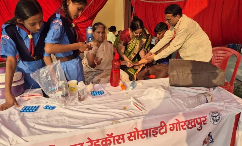 इंडियन रेडक्रॉस सोसायटी गोरखपुर के रक्तदान प्रभारी ज्ञानेंद्र ओझा के द्वारा नि:शुल्क चिकित्सा शिविर का आयोजन किया गया