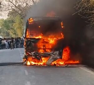 बस बनी आग का गोला, बाल बाल बचे बस में सवार चालीस यात्री