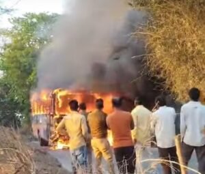 बस बनी आग का गोला, बाल बाल बचे बस में सवार चालीस यात्री