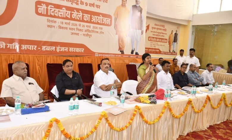 गाजीपुर, 21 मार्च 2026 उत्तर प्रदेश सरकार के 9 वर्ष पूर्ण होने के उपलक्ष्य में 18 मार्च से 26 मार्च 2026 तक आयोजित “नव निर्माण के नौ वर्ष — संकल्प, समृद्धि, सुरक्षा, सुशासन” थीम पर आधारित 09 दिवसीय मेला एवं प्रदर्शनी का आयोजन जनपद गाजीपुर में भव्य रूप से किया गया।कार्यक्रम में मुख्य अतिथि के रूप में डॉ. संगीता बलवन्त की गरिमामयी उपस्थिति रही। उनके साथ जिला विकास अधिकारी, जिला कार्यक्रम अधिकारी, जिला सूचना अधिकारी सहित अनेक अधिकारीगण मौजूद रहे, जिन्होंने आयोजन को सफल बनाने में महत्वपूर्ण भूमिका निभाई।कार्यक्रम का शुभारम्भ सहायक श्रम आयुक्त अभिषेक सिंह द्वारा किया गया। उन्होंने सभी अतिथियों एवं उपस्थित जनसमूह का स्वागत करते हुए कार्यक्रम की रूपरेखा प्रस्तुत की।विशिष्ट अतिथियों के रूप में वशिष्ठ सिंह यादव (अध्यक्ष, उद्योग मंच, गाजीपुर) एवं गुड्डू केशरी (अध्यक्ष, जिला व्यापार मंडल, गाजीपुर) की उपस्थिति ने कार्यक्रम की गरिमा बढ़ाई।मुख्य अतिथि डॉ. संगीता बलवन्त ने अपने उद्बोधन में सरकार की जनकल्याणकारी नीतियों एवं श्रमिक हित में संचालित योजनाओं की विस्तृत जानकारी दी। उन्होंने कहा कि