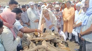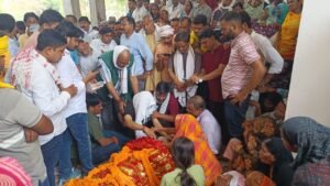 घायल पति अखिलानंद सिंह अंतिम दर्शन के लिए पहुंचे गांव, इकलौते पुत्र ने दी मुखाग्नि; क्षेत्र में शोक की लहर