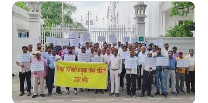 लखनऊ बिजली कर्मियों का नियामक आयोग के समक्ष प्रदर्शन