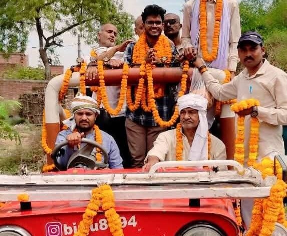 गाजीपुर : पीसीएस में 14वीं रैंक पाकर एसडीएम बने विनय कुमार उपाध्याय का पैतृक गांव कबीरपुर कला में भव्य स्वागत, गाजे-बाजे के साथ निकला काफिला