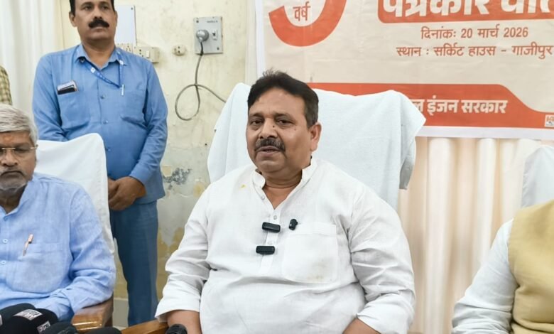 गाजीपुर, 20 मार्च 2026। भारत सरकार के 11 वर्ष एवं उत्तर प्रदेश सरकार के 9 वर्ष पूर्ण होने के अवसर पर जनपद के प्रभारी मंत्री रविंद्र जायसवाल (राज्य मंत्री, स्वतंत्र प्रभार) ने लोक निर्माण विभाग के निरीक्षण गृह स्थित गेस्ट हाउस में प्रेस वार्ता कर प्रदेश सरकार की उपलब्धियों और जनपद में हुए विकास कार्यों का विस्तृत ब्यौरा प्रस्तुत किया।प्रेस वार्ता के दौरान उन्होंने बताया कि जनपद गाजीपुर में 208.85 करोड़ रुपये की लागत से मेडिकल कॉलेज की स्थापना कराई गई है, जबकि 9.99 करोड़ रुपये की लागत से नर्सिंग कॉलेज का निर्माण कार्य प्रगति पर है। वाराणसी-गोरखपुर हाईवे का चौड़ीकरण एवं पुनर्निर्माण कराया गया है और ग्रीन फील्ड एक्सप्रेस-वे निर्माणाधीन है, जो एनएच-29 और एनएच-19 से सीधे जुड़ाव प्रदान करेगा।उन्होंने बताया कि मऊ-ताड़ीघाट रेल परियोजना के तहत गाजीपुर सिटी को जोड़ने वाली रेलवे लाइन शुरू हो चुकी है, जिसमें गंगा नदी पर रेलकम रोड ब्रिज भी बनाया गया है। पूर्वांचल एक्सप्रेस-वे के अंतर्गत जनपद में 35 किमी लंबाई का निर्माण कार्य कराया गया है। इसके अलावा एनएच-124डी के तहत सैदपुर-सादात-मरदह मार्ग का चौड़ीकरण जारी है।आवास योजनाओं के तहत प्रधानमंत्री आवास योजना (ग्रामीण) में 80,519, शहरी में 11,134 तथा मुख्यमंत्री आवास योजना में 15,139 लाभार्थियों को लाभान्वित किया गया। प्रधानमंत्री किसान सम्मान निधि योजना के अंतर्गत 4,65,150 किसानों को आर्थिक सहायता प्रदान की गई।उन्होंने बताया कि जमानियां के गहमर में 9.44 करोड़ रुपये की लागत से राजकीय महाविद्यालय, 152.83 करोड़ रुपये की लागत से सीवरेज ट्रीटमेंट परियोजना, 26.61 करोड़ रुपये की लागत से 8 सामुदायिक स्वास्थ्य केंद्र, 19.68 करोड़ रुपये से कस्तूरबा गांधी विद्यालयों के निर्माण सहित कई परियोजनाएं पूरी कराई गई हैं। साथ ही पेयजल, आईटीआई, पर्यटन, अग्निशमन केंद्र और ड्रग वेयरहाउस जैसी अनेक परियोजनाओं पर भी कार्य किया गया है।प्रभारी मंत्री ने 2017 से 2026 के बीच की उपलब्धियों का उल्लेख करते हुए बताया कि 55,983 किसानों का ऋण माफ किया गया, लाखों मीट्रिक टन गेहूं और धान की खरीद की गई, तथा स्वच्छ भारत मिशन के तहत 5,72,355 शौचालय बनाए गए। इसके अतिरिक्त पेंशन योजनाओं, सामूहिक विवाह, कन्या सुमंगला, जनधन खाते, अटल पेंशन, आयुष्मान गोल्डन कार्ड, राशन कार्ड, पीएम स्वनिधि, उज्ज्वला योजना, अमृत योजना और डिजिटल शिक्षा के तहत लाखों लाभार्थियों को लाभ मिला है।