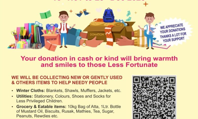 जिनमें दिनांक 7 दिसंबर, 2025 को “होमलेस चिल्ड्रन हॉस्टल”, नाथूपुर, गुरुग्राम में 50 बच्चों को कपड़े , जूते , जुराब , कापी – पेंसिल व स्टेशनरी का अन्य सामान वितरित कर इस वर्ष के अभियान की शुरुआत की जाएगी।14 दिसंबर को महिला वृद्ध-आश्रम सेक्टर-चार, गुरुग्राम में तीस महिलाओं को अनेक प्रकार की जरूरत का सामान, 25 दिसंबर को “सत्य जीवन कुष्ठ आश्रम”, लाजपत नगर, दिल्ली तथा “जीवन दीप कुष्ठ आश्रम”, आर. के. पुरम, नई दिल्ली में 146 परिवारों, 28 दिसंबर को 89 सेक्टर गुरुग्राम की बहुत जरूरतमंद और संसाधनहीन 40 महिलाओं, 31 दिसंबर को 25 गौ रथ संचालको- श्री राधा कृष्ण गौशाला, बसई, गुरुग्राम, 1 जनवरी 2026 को शीतला कॉलोनी में चल रही रेमेडियल क्लासेस के 50 बच्चों, 4 जनवरी को वृद्धाश्रम, बघोला, पलवल के 20 लाभार्थियों, 7 जनवरी को फ़िरोज़ गांधी कॉलोनी में चल रही रेमेडियल क्लासेस के 45 बच्चों, 11 जनवरी को भारत माता कुष्ठ आश्रम, फ़रीदाबाद के 66 परिवारों तथा इसी दिन 40 न्यू होप वृद्धाश्रम, फरीदाबाद के लाभार्थी, मकर संक्रांति के पावन अवसर पर 14 जनवरी 2025 को दिल्ली के मंगोलपुरी, नई दिल्ली में 40 से अधिक परिवारों तथा 18 जनवरी को अंध आश्रम, नजफगढ़, नई दिल्ली के 50 लाभार्थियों को सामान वितरित किया जाएगा l