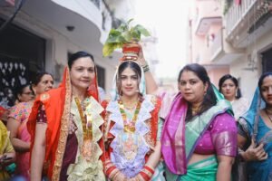 गुरुग्राम : कन्या के जन्म पर ढोल नगाड़ों के साथ कुआँ पूजन कर समाज को दिया समानता का संदेश ।