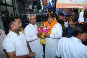 कार्यक्रम के दौरान विधायक मुकेश शर्मा ने सभी व्यापारी बंधुओं एवं दुकानदारों को गुलाब फूल भेंट कर बधाई दी और उनसे आग्रह किया कि वे GST सुधारों के लाभ आम नागरिकों तक अवश्य पहुँचाएँ।