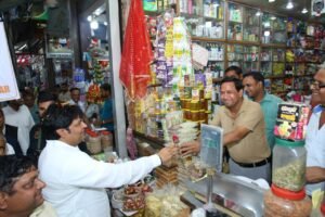 GST बचत उत्सव” अभियान के तहत विधायक मुकेश शर्मा ने गुरुग्राम के सदर बाजार में पहुंचकर व्यापारियों और दुकानदारों से संवाद किया। इस दौरान उन्होंने स्वदेशी उत्पादों को अपनाने और देश की अर्थव्यवस्था को मजबूती देने के लिए जागरूकता अभियान चलाते हुए व्यापारियों को प्रेरित किया।