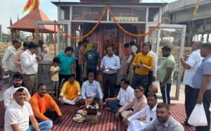 अतुल कटारिया चौक हनुमान मन्दिर प्रांगण मे पंडित विनोद शास्त्री ने मंत्रोच्चार कर हवन यज्ञ को विधिवत संपन्न कराया I