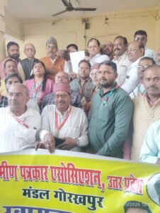 ग्रामीण पत्रकार एसोसिएशन के मंडल अध्यक्ष सुधीर सिंह के नेतृत्व में 5 सूत्रीय मांगों को लेकर मुख्यमंत्री योगी आदित्य नाथ को संबोधित ज्ञापन मंडल आयुक्त के अनुपस्थिति में सहायक मंडल आयुक्त गोरखपुर को दिया गया सहायक मंडल आयुक्त गोरखपुर ने ज्ञापन लेते हुए कहा कि उक्त ज्ञापन मुख्यमंत्री तक तत्काल प्रेषित कर दिया जाएगा। प्रदेश उपाध्यक्ष कैप्टन वीरेंद्र सिंह एवं डॉ ओमप्रकाश द्विवेदी ने कहा कि मुख्य रूप से इस मांग पत्र में प्रदेश में मान्यता प्राप्त समिति एवं विज्ञापन मान्यता समिति में ग्रामीण पत्रकार संगठन उत्तर प्रदेश के दो दो प्रतिनिधि को सम्मिलित किया जाए ग्रामीण पत्रकारों की समस्याओं का समाधान जल्द से जल्द किया जाए एवं ग्रामीण पत्रकार आयोग का गठन किया जाए ग्रामीण पत्रकार एसोसिएशन उत्तर प्रदेश की राजधानी लखनऊ में कार्यालय हेतु दारुल शफा अथवा ओसीआर में स्थान आवंटन किया जाए तहसील और ब्लॉक स्तर पर मान्यता के लिए किए गए प्रावधान में संशोधन करके आने वाले सभी दैनिक समाचार पत्रों के संवाददाताओं को मान्यता का मार्ग प्रशस्त किया जाए एवं परिवहन तथा चिकित्सा सुविधा उपलब्ध कराई जाए। गैर मान्यता प्राप्त ग्रामीण पत्रकारों को भी चिकित्सा सुविधा मुहैया कराने हेतु प्रधानमंत्री आयुष्मान भारत योजना से आच्छादित किया जाए। प्रदेश सचिव जयप्रकाश गोविंद राव ने कहा कि ग्रामीण पत्रकार एसोसिएशन अपने पत्रकारों के हितों की रक्षा के लिए सदैव तत्पर था, है और आगे भी रहेगा। इस अवसर पर जिला महामंत्री गोरखपुर संतोष कुमार त्रिपाठी प्रभुनाथ गुप्ता मंडल मंत्री गोरखपुर शैलेश कुमार उपाध्याय जिला अध्यक्ष कुशीनगर अजय कुमार सिंह मंडल मंत्री कुशीनगर, नागेंद्र नाथ शर्मा जिला अध्यक्ष देवरिया डॉ अजय कुमार बरनवाल मंडल महामंत्री, डॉ नर्मदा सिंह जिला सचिव कुशीनगर, शेषमणि पांडे जिला अध्यक्ष महाराजगंज विवेक कुमार पांडे उपाध्यक्ष महाराजगंज ,सदर तहसील अध्यक्ष पंकज पांडेय, अमित कुमार भारती,धर्मेंद्र श्रीवास्तव आदर्श श्रीवास्तव इमरान खान,हर्ष कुमार परशुराम विश्वकर्मा महिला प्रकोष्ठ की प्रभारी प्रिया शुक्ला तहसील चौरी चौरा के अध्यक्ष ललित मोहन तिवारी भुवनेश्वर दुबे बृजेश कुमार पाठक मनीष सिंह अरुण कुमार चौरसिया शिवम उपाध्याय तहसील सहजनवा के अध्यक्ष हरि गोविंद चौबे पुरुषोत्तम अग्रवाल अशोक चौधरी बेचन शर्मा सहित सैकड़ो की संख्या में पत्रकार उपस्थित थे।