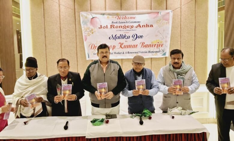कविता के माध्यम से संसार के सुख दु:ख आनंद और क्लेश आदि यथार्थ रुप का हम अनुभव कर सकते हैं।इतना ही नहीं कविता कवि की भावनाओं, विचारों और कल्पनाओं को छंद, तुक और अलंकारिक भाषाओं के द्वारा व्यक्त करने का माध्यम है उक्त विचार कवियत्री श्री मती मल्लिका दास की काव्य पुस्तक “जल रंगे आंका” का स्थानिक एक होटल के सभागार में बतौर मुख्य अतिथि विमोचन करते हुए वरिष्ठ होम्योपैथिक चिकित्सक डा रुप कुमार बनर्जी ने व्यस्त किया।