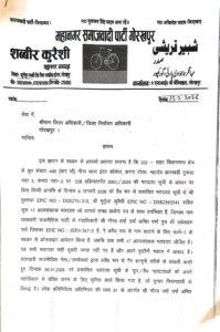 गोरखपुर महानगर समाजवादी पार्टी के महानगर अध्यक्ष के नेतृत्व में DM गोरखपुर/ज़िला निर्वाचन अधिकारी को ज्ञापन सौंपा गया