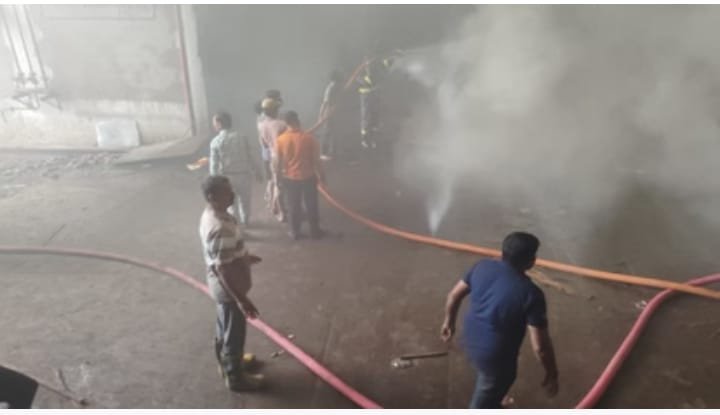 गोरखपुर सुबह अचानक उठने लगा धुआं: गीडा में फ्लाई फैक्ट्री में लगी भीषण आग, दमकल की गाड़ियां आग बुझाने मे जूटी