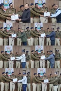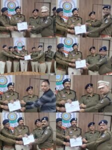 सूरजपुर। डीआईजी व एसएसपी श्री प्रशांत कुमार ठाकुर ने वर्ष 2025 में उत्कृष्ट कार्य करने वाले 56 पुलिस अधिकारी व जवानों जिनमें 3 निरीक्षक, 2 एसआई, 6 एएसआई, 9 प्रधान आरक्षक, 35 आरक्षक व 1 महिला आरक्षक शामील है उन्हें प्रशिस्त पत्र देकर सम्मानित किया है।