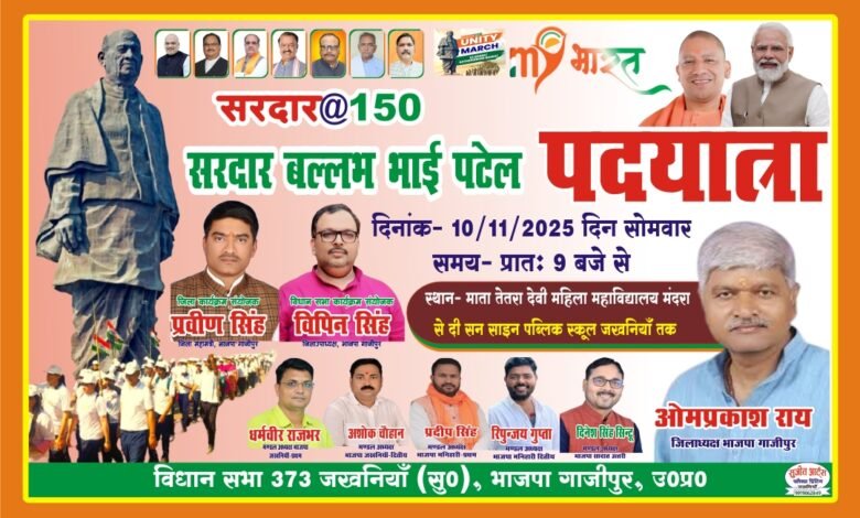 जखनियां विधानसभा में सरदार पटेल की 150वीं जयंती पर भव्य पदयात्रा आज