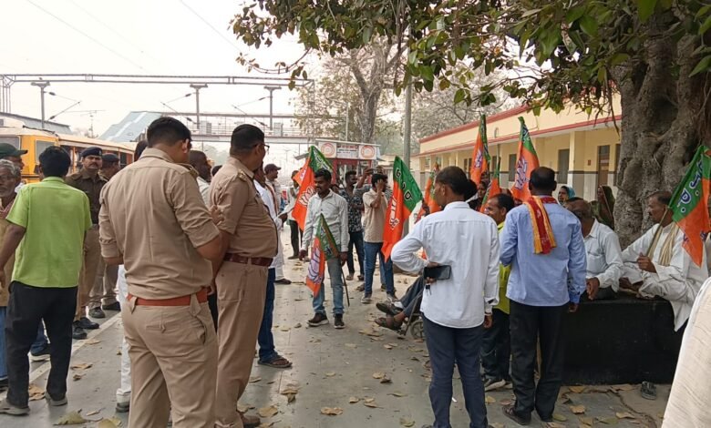 दिव्यांगों ने जखनिया रेलवे स्टेशन पर किया प्रदर्शन, दिल्ली कूच से पहले कई लोगों को किया गया होम अरेस्ट