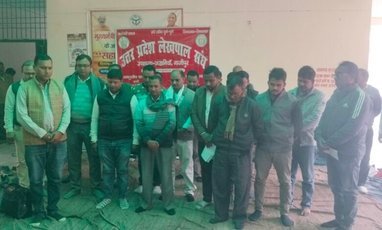 जखनिया तहसील में लेखपाल संघ का प्रदर्शन, मृतक लेखपाल के परिवार को 50 लाख मुआवजे की मांग