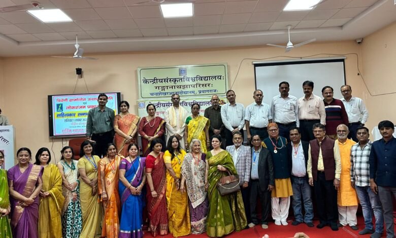 प्रयागराज। चन्द्रशेखर आजाद पार्क स्थित गंगानाथ झा परिसर में केंद्रीय संस्कृत विश्वविद्यालय के सभागार में त्रिवेणी ग्रामोद्योग उत्थान समिति एवं लोकरंजन प्रकाशन द्वारा साहित्यकार सम्मान समारोह दो हजार पच्चीस का आयोजन में किया गया जिसमें देश भर से आए हुए साहित्यकारों को उनकी कृतियों पर सम्मानित किया गया।
