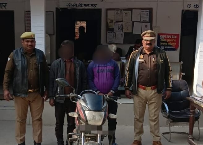 संक्षिप्त विवरणः- पुलिस अधीक्षक फतेहपुर अनूप कुमार सिंह के निर्देशन में वांछित/वारण्टियों की गिरफ्तारी व अपराध एवं अपराधियों के विरुद्ध चलाये जा रहे अभियान के क्रम में दिनांक 24.12.2025 को थाना हुसैनगंज पुलिस द्वारा दिनांक 23.12.2025 को थाना हुसैनगंज पर पंजीकृत पर मु0अ0सं0 347/2025 धारा 303(2) BNS बनाम अज्ञात, चोरी का खुलासा करते हुए बाबूगंज मोड से 1. रामरूप पटेल पुत्र जगरूप पटेल निवासी ग्राम सहनीपुर थाना हुसैनगंज जनपद फतेहपुर उम्र करीब 36 वर्ष, 02. जितेन्द्र राजपूत पुत्र बैजनाथ निवासी ग्राम तिवारीपुर थाना हुसैनगंज जनपद फतेहपुर उम्र करीब 30 वर्ष को चोरी की गयी मोटर साइकिल के साथ किया गया गिरफ्तार । गिरफ्तारी एवं बरामदगी के आधार पर मुकदमा उपरोक्त में धारा 317(2),317(4),317(5) बीएनएस की बढोत्तरी करते हुये गिरफ्तार अभियुक्तों को आज दिनांक 25.12.2025 को मा0 न्यायालय भेजा गया ।