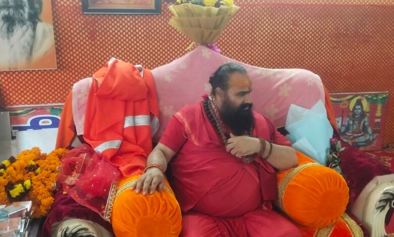 परिजनों संग मंदिर पहुंचे श्रद्धालु, महामंडलेश्वर भवानी नंदन यति जी से लिया आशीर्वाद