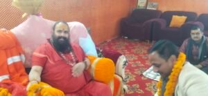 परिजनों संग मंदिर पहुंचे श्रद्धालु, महामंडलेश्वर भवानी नंदन यति जी से लिया आशीर्वाद