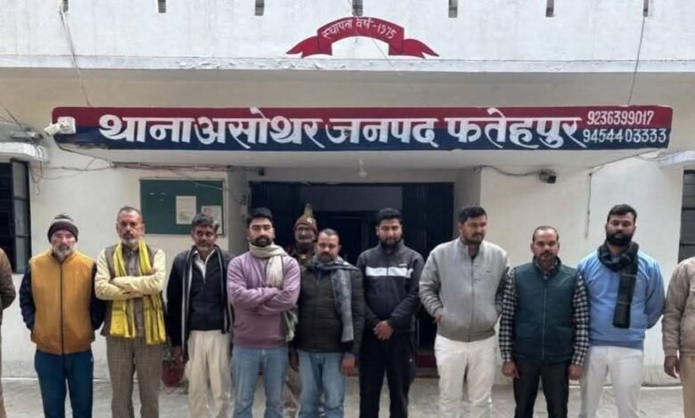 गिरफ्तार किए गए आरोपियों में रोशन सिंह, रोमिल तिवारी, इन्द्रेश तिवारी, मनोज शर्मा, हरितालिका दूबे, विनोद उर्फ कुल्लू, अशोक कुमार उर्फ गुड्डू धोबी, अरूण कुमार एवं शुभम सिंह शामिल हैं। सभी अभियुक्त ग्राम सरकंडी, थाना असोथर, जनपद फतेहपुर के निवासी बताए गए हैं।