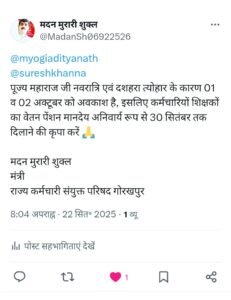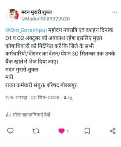 मुख्यमंत्री और जिलाधिकारी को ट्वीट कर दशहरा के पूर्व वेतन पेंशन की मांग:– रूपेश