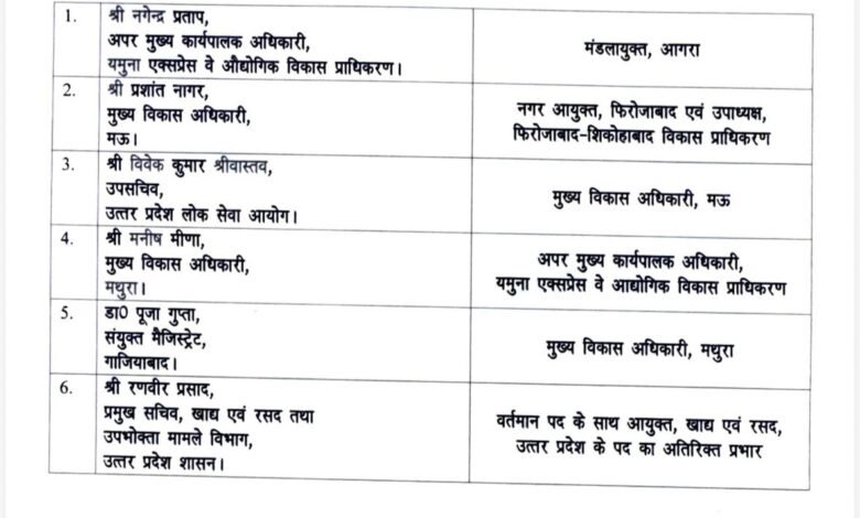 यूपी में छह आईएएस अफसरों का तबादला