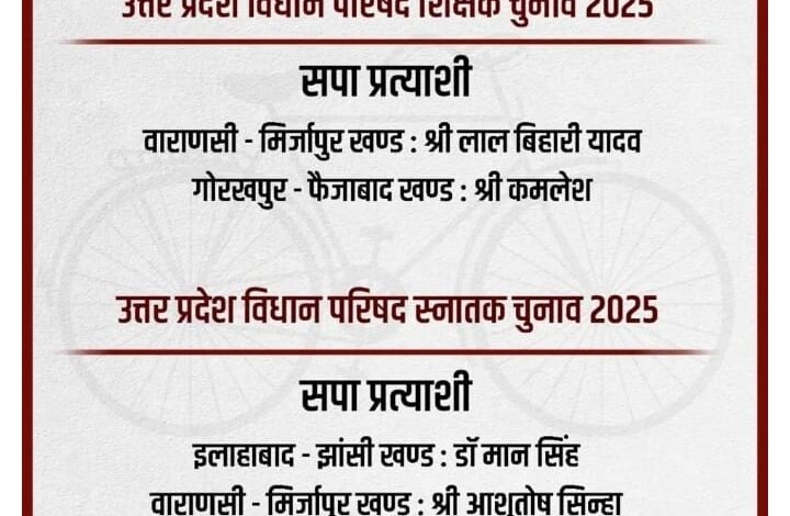 यूपी विधान परिषद चुनाव के लिए सपा ने घोषित किए प्रत्याशी, लखनऊ से इन्हें बनाया प्रत्याशी