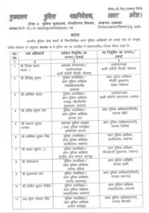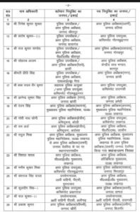 आदेश के मुताबिक झांसी के एएसपी सिटी ज्ञानेंद्र कुमार सिंह को अमेठी, डीजीपी मुख्यालय की स्थापना शाखा में तैनात रंजन सिंह को डीजीपी मुख्यालय में एएसपी क्राइम, बरेली में एएसपी एलआईयू गोपी नाथ सोनी को लखनऊ कमिश्नरेट में अपर पुलिस उपायुक्त, एलआईयू अयोध्या में तैनात राम अर्ज को पीटीएस जालौन, सीआईडी मुख्यालय में तैनात विशाल यादव को लॉजिस्टिक मुख्यालय, नोएडा कमिश्नरेट में तैनात मनीष कुमार मिश्रा को मिर्जापुर में नक्सल ऑपरेशन, मुरादाबाद स्थित 9वीं वाहिनी पीएसी में तैनात बंशराज सिंह यादव को सीआईडी मुख्यालय, प्रयागराज कमिश्नरेट में तैनात कुलदीप सिंह प्रथम को संभल में एएसपी उत्तरी, अलीगढ़ स्थित 38वीं वाहिनी पीएसी में तैनात राजकुमार द्वितीय को 34वीं वाहिनी पीएसी वाराणसी, खीरी में एएसपी पश्चिमी प्रकाश कुमार को बिजनौर में एएसपी ग्रामीण, प्रयागराज पीएसी में तैनात अनित कुमार को 9वीं वाहिनी पीएसी मुरादाबाद, सीआईडी गोरखपुर की सेक्टर ऑफिसर रचना मिश्रा को पीटीएस गोरखपुर, वाराणसी कमिश्नरेट में तैनात सुशील कुमार गंगा प्रसाद को कासगंज, संभल में एएसपी उत्तरी राजेश कुमार श्रीवास्तव को केंद्रीय आयुध भंडार, मेरठ में एएसपी ग्रामीण राकेश कुमार मिश्रा को पुलिस मुख्यालय, आगरा कमिश्नरेट में एएसपी ट्रैफिक अमिता सिंह को यूपी 112 मुख्यालय, साइबर क्राइम मुख्यालय में तैनात श्वेताभ पांडेय को ईओडब्ल्यू मुख्यालय, लखनऊ कमिश्नरेट में तैनात पंकज कुमार सिंह को 20वीं वाहिनी पीएसी आजमगढ़, कासगंज में तैनात राजेश कुमार भारतीय को पीटीसी सीतापुर, भर्ती बोर्ड में तैनात मोनिका चड्ढा को 38वीं वाहिनी पीएसी अलीगढ़, यूपीपीसीएल में तैनात अंकिता सिंंह को भर्ती बोर्ड, सोनभद्र पीएसी में तैनात विजय आनंद को प्रयागराज कमिश्नरेट और प्रयागराज कमिश्नरेट में अपर पुलिस उपायुक्त जंग बहादुर यादव को वाराणसी कमिश्नरेट भेजा गया है।