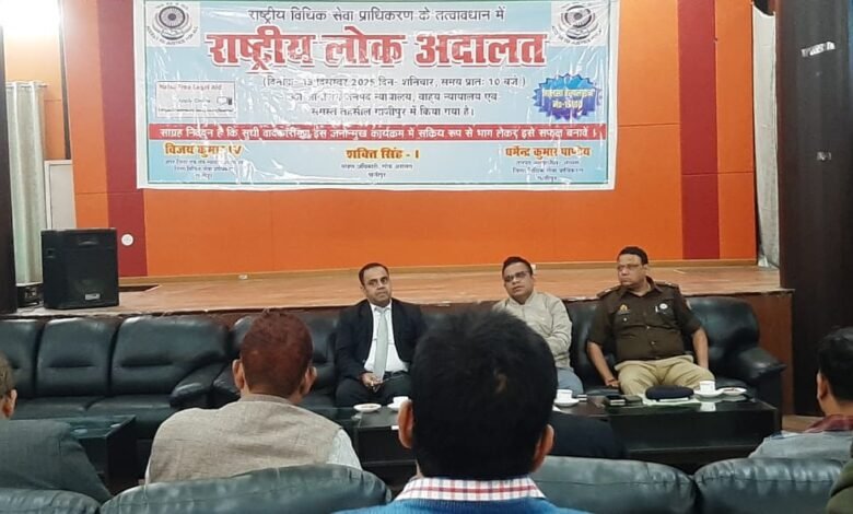 गाजीपुर, – आगामी राष्ट्रीय लोक अदालत (13 दिसंबर 2025) की तैयारियों की समीक्षा हेतु जिला विधिक सेवा प्राधिकरण, गाजीपुर के अध्यक्ष माननीय जनपद न्यायाधीश धर्मेन्द्र कुमार पाण्डेय के निर्देश पर एक महत्वपूर्ण बैठक आयोजित की गई।बैठक की अध्यक्षता राष्ट्रीय लोक अदालत के नोडल अधिकारी शक्ति सिंह, अपर जिला एवं सत्र न्यायाधीश द्वारा की गई। उन्होंने सभी विभागों को निर्देशित किया कि लोक अदालत का अधिक से अधिक लाभ आमजन तक पहुँचे और इसके लिए व्यापक स्तर पर प्रचार-प्रसार सुनिश्चित किया जाए।उन्होंने यह भी कहा कि लोक अदालत के नोटिसों की 100 प्रतिशत तामीला कराई जाए, ताकि सभी पक्ष समय पर उपस्थित हो सकें।प्रशासनिक स्तर पर तैयारी,जिला प्रशासन की ओर से नोडल अधिकारी/मुख्य राजस्व अधिकारी आयुष चौधरी ने सभी विभागों को निर्देश दिया कि लोक अदालत से संबंधित मामलों की सही पहचान और सूचीबद्धता शीघ्र पूरी कर ली जाए।पुलिस विभाग का आश्वासन,लोक अदालत की तैयारियों में पुलिस विभाग भी पूरी तरह सहयोग करेगा।पुलिस नोडल अधिकारी/अपर पुलिस अधीक्षक (ग्रामीण) अतुल कुमार ने यह आश्वासन दिया कि लोक अदालत के संचालन में पुलिस विभाग हर स्तर पर सहयोग प्रदान करेगा।अधिकारियों की उपस्थिति,बैठक में पुलिस एवं प्रशासनिक विभागों के बड़ी संख्या में अधिकारी शामिल रहे।जिला विधिक सेवा प्राधिकरण, गाजीपुर के सचिव/अपर जिला एवं सत्र न्यायाधीश विजय कुमार भी बैठक में उपस्थित रहे।यह बैठक आगामी राष्ट्रीय लोक अदालत की सफलता, पारदर्शिता और जनसहभागिता सुनिश्चित करने की दृष्टि से अत्यंत महत्वपूर्ण मानी जा रही है।