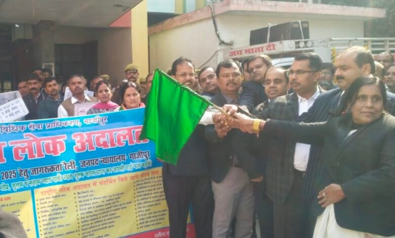गाजीपुर– 13 दिसम्बर को प्रस्तावित राष्ट्रीय लोक अदालत के व्यापक प्रचार-प्रसार के लिए आज जनपद न्यायालय गाजीपुर से एक जागरूकता रैली निकाली गई। यह आयोजन उ0प्र0 राज्य विधिक सेवा प्राधिकरण, लखनऊ के निर्देशानुसार किया जा रहा है।राष्ट्रीय लोक अदालत का आयोजन जनपद न्यायालय गाजीपुर के साथ-साथ वाह्य न्यायालय सैदपुर, मुहम्मदाबाद तथा ग्राम न्यायालय जखनियाँ और जमानियाँ सहित अन्य सरकारी प्रतिष्ठानों में भी होगा। अदालत में उत्तराधिकार प्रमाण पत्र, छोटे व लघु दाण्डिक वाद, पारिवारिक विवाद, धारा-138 एन.आई. एक्ट, स्टाम्प व पंजीयन वाद, मोटर अधिनियम, चकबंदी, श्रम वाद, उपभोक्ता फोरम वाद, वाट-माप अधिनियम संबंधी मामले, कराधान प्रकरण, बिजली चोरी के मामले तथा सुलह–समझौते के जरिए वैवाहिक विवादों का निस्तारण किया जाएगा।रैली को माननीय जनपद न्यायाधीश एवं अध्यक्ष, जिला विधिक सेवा प्राधिकरण श्री धमेन्द्र कुमार पाण्डेय ने हरी झंडी दिखाकर रवाना किया। उन्होंने आमजन से अपील की कि वे अधिक से अधिक संख्या में राष्ट्रीय लोक अदालत में उपस्थित होकर लाभ प्राप्त करें।विश्व मानवाधिकार दिवस के अवसर पर उन्होंने लोगों को अपने अधिकारों के प्रति जागरूक रहने और दायित्वों का पालन करने की भी सलाह दी।रैली में संजय हरी शुक्ला (पीठासीन अधिकारी, मोटर दुर्घटना दावा अधिकरण),अली रजा (अपर जिला एवं सत्र न्यायाधीश, कक्ष-03),शक्ति सिंह (अपर जिला एवं सत्र न्यायाधीश, कक्ष-01/नोडल अधिकारी),अभिमन्यु सिंह (स्पेशल जज SC/ST एक्ट),राम अवतार प्रसाद (स्पेशल जज पाक्सो, कक्ष-1),विजय कुमार-IV (अपर जिला एवं सत्र न्यायाधीश/सचिव, जिला विधिक सेवा प्राधिकरण)तथा अन्य न्यायिक अधिकारी और कर्मचारी उपस्थित रहे।