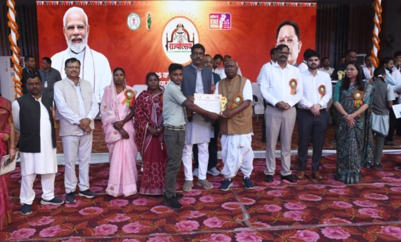 सरगुजा सासंद श्री चिंतामणि महाराज ने राज्योत्सव के प्रथम दिवस विभिन्न योजनाओं के तहत 51 हितग्राहियों को सामग्रियों का वितरण किया। जिसमें पंचायत एवं ग्रामीण विकास विभाग अंतर्गत 10 हितग्राहियों को प्रधानमंत्री आवास की चाबी सौंप गई। पशुधन विकास विभाग द्वारा उन्नत मादा वत्स पालन के 3 हितग्राहियों को 18 हजार का चेक, नर बकरा वितरण अंतर्गत 5 हितग्राहियों को 4 हजार का चेक, सुकरत्रयी वितरण अंतर्गत 2 हितग्राहियों को 9 हजार का चेक, स्वास्थ्य विभाग अंतर्गत 3 हितग्राहियों को आयुष्मान वय वंदन कार्ड, 2 हितग्राहियों को आयुष्मान कार्ड, उद्यान विभाग अंतर्गत राष्ट्रीय कृषि विकास योजना अंतर्गत 5 हितग्राहियों को अनुदान प्रमाण पत्र, एकीकृत बागवानी विकास मिशन अंतर्गत 5 हितग्राहियों को अनुदान प्रमाण पत्र, वन विभाग अंतर्गत 1 हितग्राही को कूप कटाई का लाभांश राशि लगभग 20 लाख 3 हजार 976 राशि का चेक, 4 हितग्राहियों को वन्य प्राणी क्षतिपूर्ति चेक, समाज कल्याण विभाग अंतर्गत राष्ट्रीय परिवार सहायता योजना के 5 लाभार्थियों को 20 हजार की राशि का चेक, पंचायत विभाग अंतर्गत एनआरएलएम के 6 हितग्राहियों को सीसीएल राशि 6 लाख का वितरण किया गया।