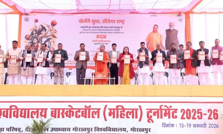 कॉमनवेल्थ और ओलंपिक के अनुरूप करें तैयारी मुख्यमंत्री ने कहा कि 2030 का कॉमनवेल्थ गेम्स गुजरात में होगा। हर राज्य और खिलाड़ियों को इसके अनुरूप खुद को तैयार करना होगा। उन्होंने कहा कि भारत ने 2036 के ओलंपिक के लिए भी आवेदन कर रहा है। कॉमनवेल्थ और ओलंपिक में अधिक पदक जीतने की तैयारी अभी से ही करनी होगी। गुरु गोरक्षनाथ की धरा पर किया खिलाड़ियों का अभिनंदनअपने संबोधन में सीएम योगी ने प्रदेश सहित देश के 14 राज्यों से आईं बास्केटबाल की महिला खिलाड़ियों का गुरु गोरखनाथ की पावन साधनास्थली पर स्वागत और अभिनंदन किया। उन्होंने गोरखपुर को आध्यात्मिक, सांस्कृतिक और ऐतिहासिक विरासत से समृद्ध धरा बताने के साथ आजादी के आंदोलन में चौरीचौरा की घटना, वैदिक साहित्य के विश्व में सबसे बड़े प्रकाशन केंद्र गीता प्रेस की महत्ता बताई।साथ ही अमर सेनानी पंडित रामप्रसाद बिस्मिल, बंधु सिंह से इस जिले के किसी न किसी रूप में जुड़ाव का उल्लेख करते हुए गोरखपुर को महान उपन्यासकार मुंशी प्रेमचंद की कर्मभूमि बताया। मुख्यमंत्री ने कहा कि गोरखपुर अनेक विभूतियों की पावन धरा है। मंचीय कार्यक्रम के दौरान मुख्यमंत्री ने गोरखपुर विश्वविद्यालय क्रीड़ा परिषद की खेल विवरणिका का विमोचन।