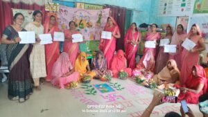 आज दिनांक 14 -10- 2025 को आकांक्षात्मक ब्लॉक बांसगांव भुसवाल ग्राम सभा में स्वस्थ नारी सशक्त परिवार एवं आठवां राष्ट्रीय पोषण माह एवं मिशन शक्ति5.0के अंतर्गत विभिन्न कार्यक्रम का आयोजन किया गया बच्चों द्वारा रोल प्ले किया गया जिसके माध्यम से दहेज उत्पीड़न ,भ्रूण हत्या बाल मजदूरी इत्यादि को रोकने के लिए विभिन्न हेल्प नंबरों को साझा किया गया लोगों को जागरूक किया गया कि 14 वर्ष से कम आयु के बच्चों से बाल मजदूरी न करा के उनको शिक्षा की मुख्य धारा से जुड़ने के लिए प्रेरित करें । ‘हर बच्चे को शिक्षा का अधिकार है’ ‘हर बच्चे का है अधिकार पूरा पोषण पूरा प्यार ‘ इसी के क्रम में छोटी-छोटी बच्चियों द्वारा सांस्कृतिक कार्यक्रम भी किया गया तथा सात गर्भवती महिलाओं का गोद भराई कार्यक्रम के माध्यम से उनको मातृत्व पोषण का संदेश दिया गया तथा यह भी संदेश दिया गया कि स्वस्थ नारी सशक्त परिवार विकसित भारत का आधार है। आंगनबाड़ी कार्यकर्ताओं द्वारा विभिन्न प्रकार की पोषण रेसिपी भी तैयार गई। कार्यक्रम को सफल बनाने में प्रभारी बाल विकास योजना अधिकारी सुनीता शुक्ला, ब्लॉक कोऑर्डिनेटर अनुप्रिया सिंह, प्रधानाध्यापक अशोक राम त्रिपाठी जी ,यूनिसेफ से विनय दुबे जी प्रोग्रेसिव फाउंडेशन से मनीष शुक्ला जी एवं क्षेत्र की आंगनबाड़ी कार्यकत्री रिया सिंह, प्रियंका सिंह, पूनम सिंह, प्रेमशिला, उमा नितांजलि एवं अन्य सभी आंगनबाड़ी कार्यकत्रियों की सक्रिय भूमिका रही।