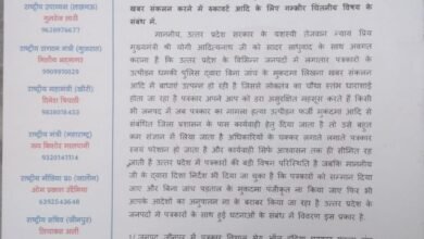 पत्रकारों के उत्पीड़न पंजीकृत मुकदमे को लेकर ऑल इंडिया पत्रकार एकता संघ के राष्ट्रीय अध्यक्ष केडी सिंह ने यूपी के मुख्यमंत्री को पत्र लिखकर निष्पक्ष जांच की मांग की