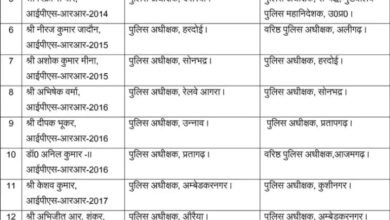 यूपी में 16 आईपीएस अफसरों के हुए तबादले, 10 जिलों के कप्तान बदले यूपी में सात आईपीएस अफसरों के तबादले…