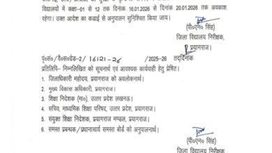 प्रयागराज में मकर संक्रांति और मौनी अमावस्या के दौरान श्रद्धांलुओं की भारी भीड़ को देखते हुए प्रशासन ने बड़ा निर्णय लिया है। जिले के सभी स्कूलों को 16 से 20 जनवरी तक बंद रखने का आदेश जारी किया गया है