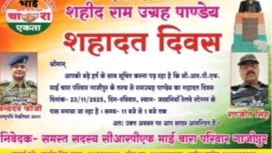 बेद प्रकाश पाण्डेय ब्यूरो चीफ गाजीपुर। आज दिनांक।21/11/025को महावीर चक्र विजेता शहीद रामउग्रह पाण्डेय का शहादत दिवस 23 नवम्बर को…