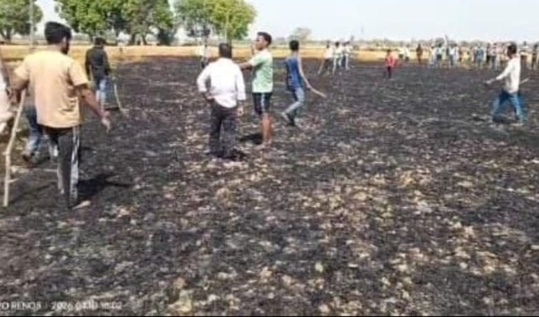 गाजीपुर विद्युत शॉर्ट सर्किट से लगी आग से तीन बीघा गेहूं की फसल बनी राख…