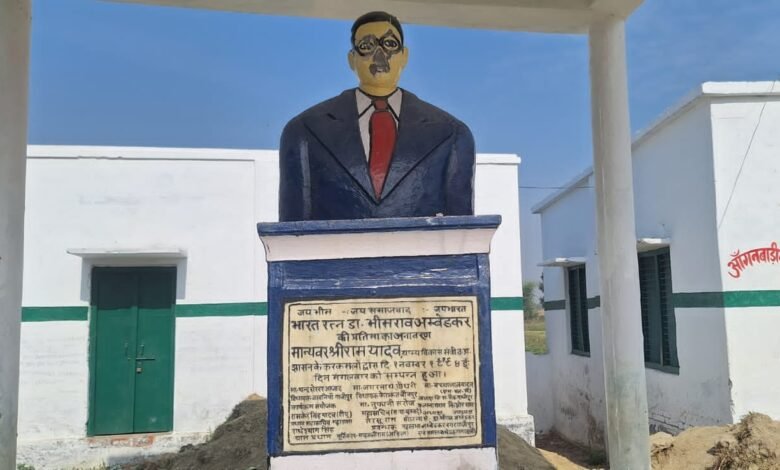 प्राथमिक विद्यालय में अंबेडकर प्रतिमा तोड़ी, ग्रामीणों का हंगामा – नई प्रतिमा लगाने की मांग…