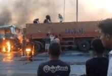 गाजीपुर : पूर्वांचल एक्सप्रेसवे पर डिवाइडर से टकराकर ट्रेलर बना आग का गोला,कूदकर भागा चालक