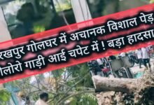 गोरखपुर गोलघर पुलिस चौकी के पीछे पेट्रोल पंप के पास विशालकाय पेड़ गिरा, बड़ा हादसा…